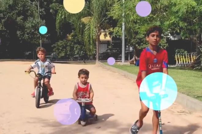 艾克森发布了一段视频,视频中,他的三个儿子同时出现在镜头前,骑着车,一起快乐地向前走。